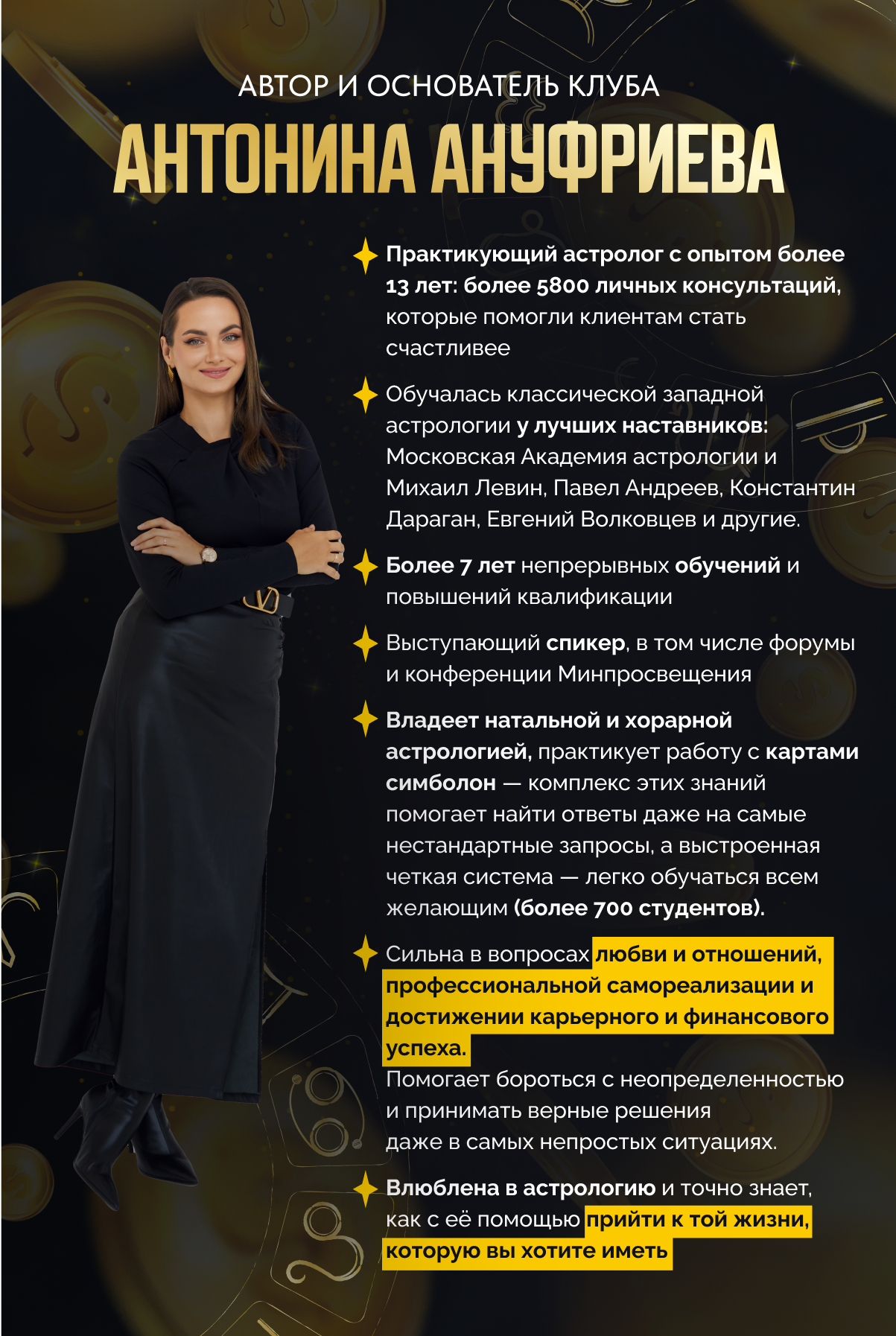 Во время уроков каждый участник сможет построить свою натальную карту, найти в ней аспекты, ограничивающие рост доходов, понять как эти “ограничения” убрать
