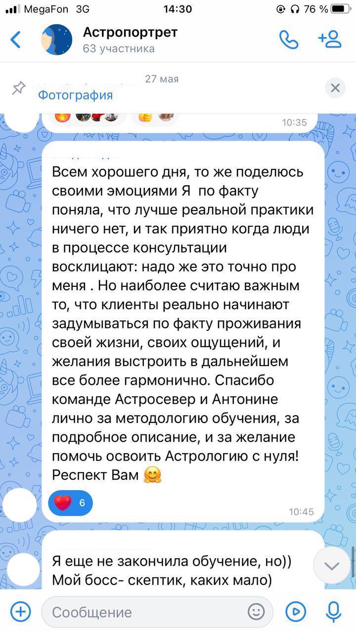 В рамках этого интенсива Антонина обучит участников технике составления и работы с натальной картой, а также бесплатно поделится информацией, которую можно узнать только в рамках личных консультаций.